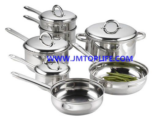 Description:14x7.5cm saucepan with lid18x9.5cm saucepan with lid18x9.5cm steamer20x10.5cm saucepan with lid24x13.5cm casserole with lid20x5.5cm fry pan Without lid24x6.5cm fry pan Without lid