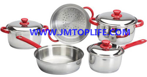 Description:16x9.5cm saucepan with lid20x11.5cm casserole with lid24x13.5cm casserole with lid24x6.5cm fry pan Without lid20x8.5cm steamer