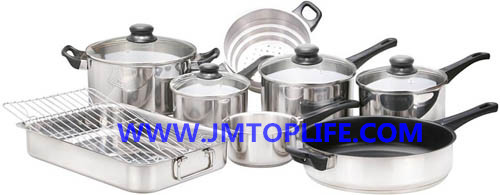 Description:14x7.5cm saucepan Without lid16x8.5cm saucepan with lid18x9.5cm saucepan with lid20x10.5cm saucepan with lid20x9.5cm steamer24x13.5cm casserole with lid26x6.5cm frypan Without lidSquare traychromeplate Iron wire Rack