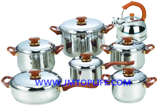 Description:16x10.5cm saucepan with lid16x10.5cm casserole with lid18x11.5cm casserole with lid20x12.5cm casserole with lid24x14.5cm casserole with lid24x7.5cm fry pan with lid2.5L Whistling kettle
