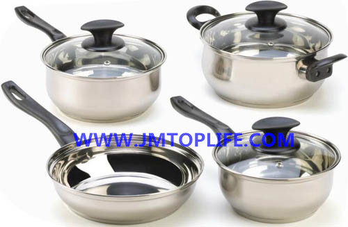 Description:16x7.5cm saucepan with lid18x8.5cm saucepan with lid22x10.5cm casserole with lid22x5.5cm fry pan Without lid