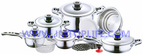 Description:16x8cm saucepan with lid 16x8cm casserole with lid 20x10cm casserole with lid 24x14cm casserole with lid 24x6.5cm frypan with lid 20x9.5cm steamer 20x6.5cm mixing bowl with plastic lid Bakelite Mat 2pcs